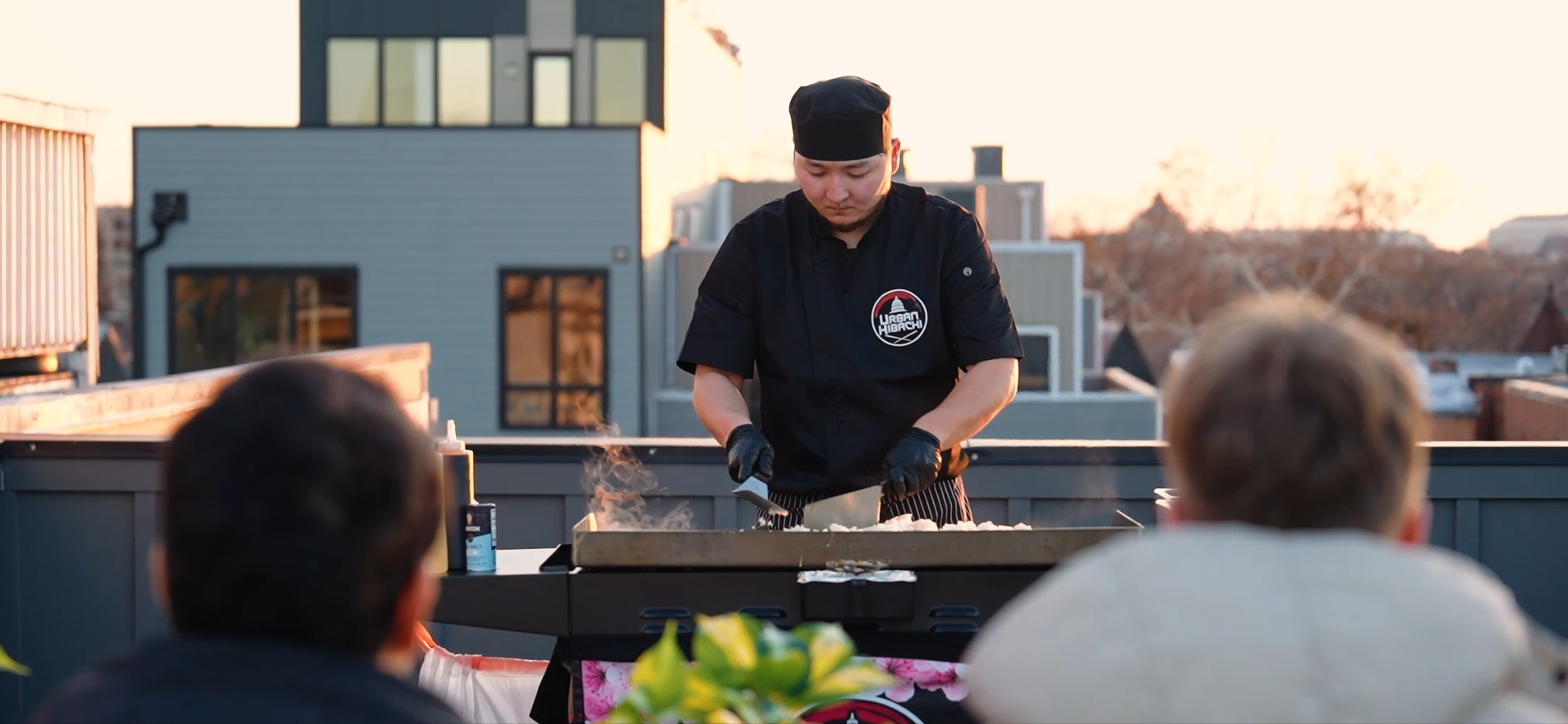 Urban Hibachi brings professional chefs, live entertainment, and 100% Halal-certified premium meats directly to your private event across Maryland — from Bethesda to Frederick and everywhere in between.